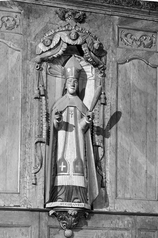 Choeur, mur est, niche de droite : statue de saint CorentinImmatriculation