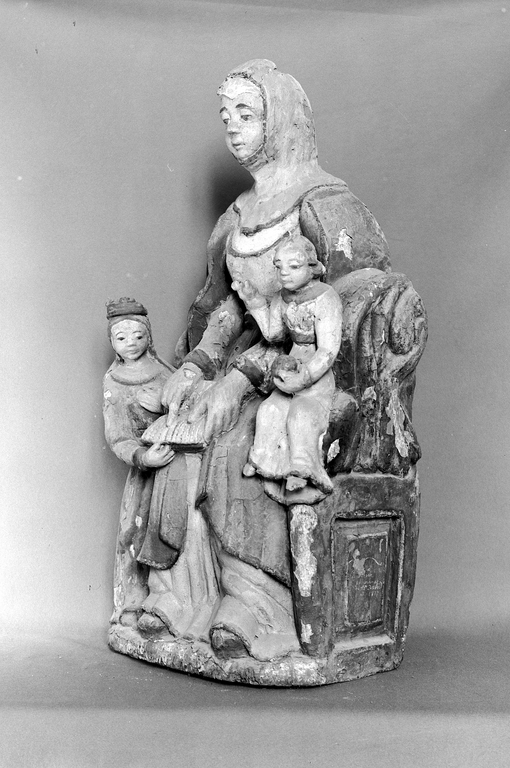 Groupe sculpté (d'applique, demi-nature) : sainte Anne Trinitaire, église paroissiale Notre-Dame (Trémargat),
