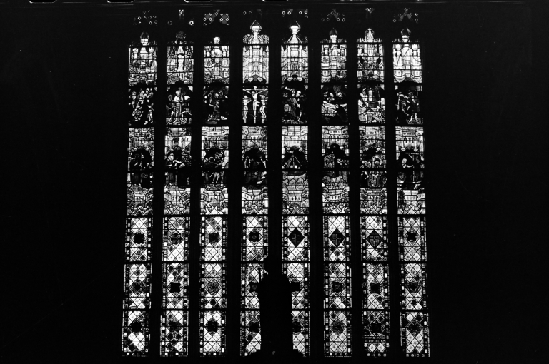 Maîtresse-vitre : Verrière à personnages : Vie de saint Jacques, Vie du Christ (baie 0),