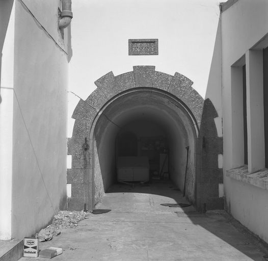 Vue de l'entrée du magasin à poudre terrassé daté de 1884 de la batterie de Tremet en 1969Immatriculation