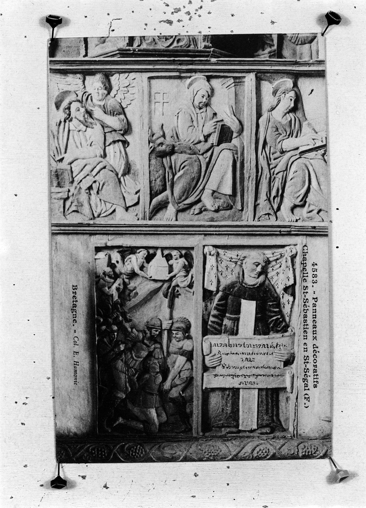 Bas-reliefs (12) (série) : la légende de Notre-Dame de lorette, chapelle Saint-Sébastien (Saint-Ségal),