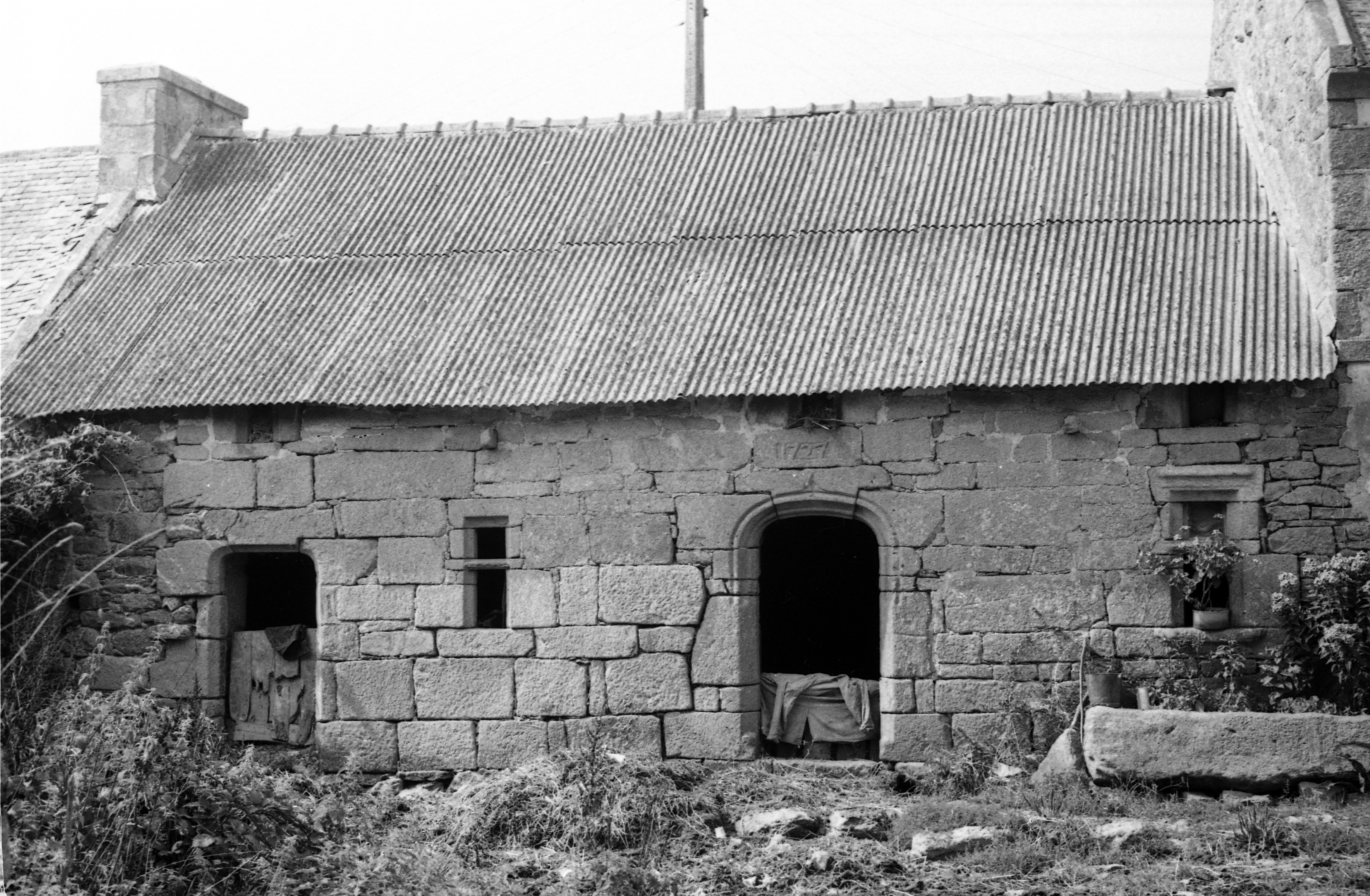 Alignement principal, élévation antérieure de l'ancien logis daté 1727 devenu dépendance agricole. (1969)Immatriculation