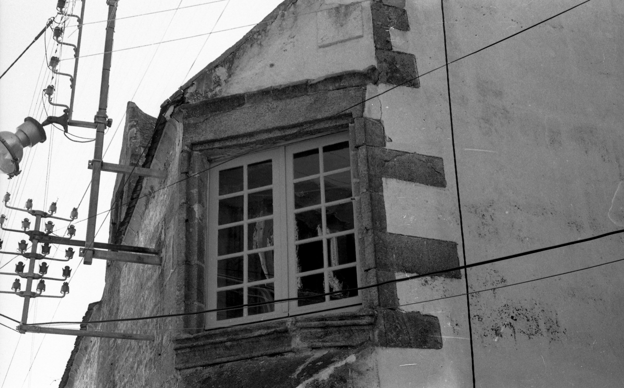 Vue rapprochée prise du sud-est, détail de la fenêtre d'angle. (1969)Immatriculation