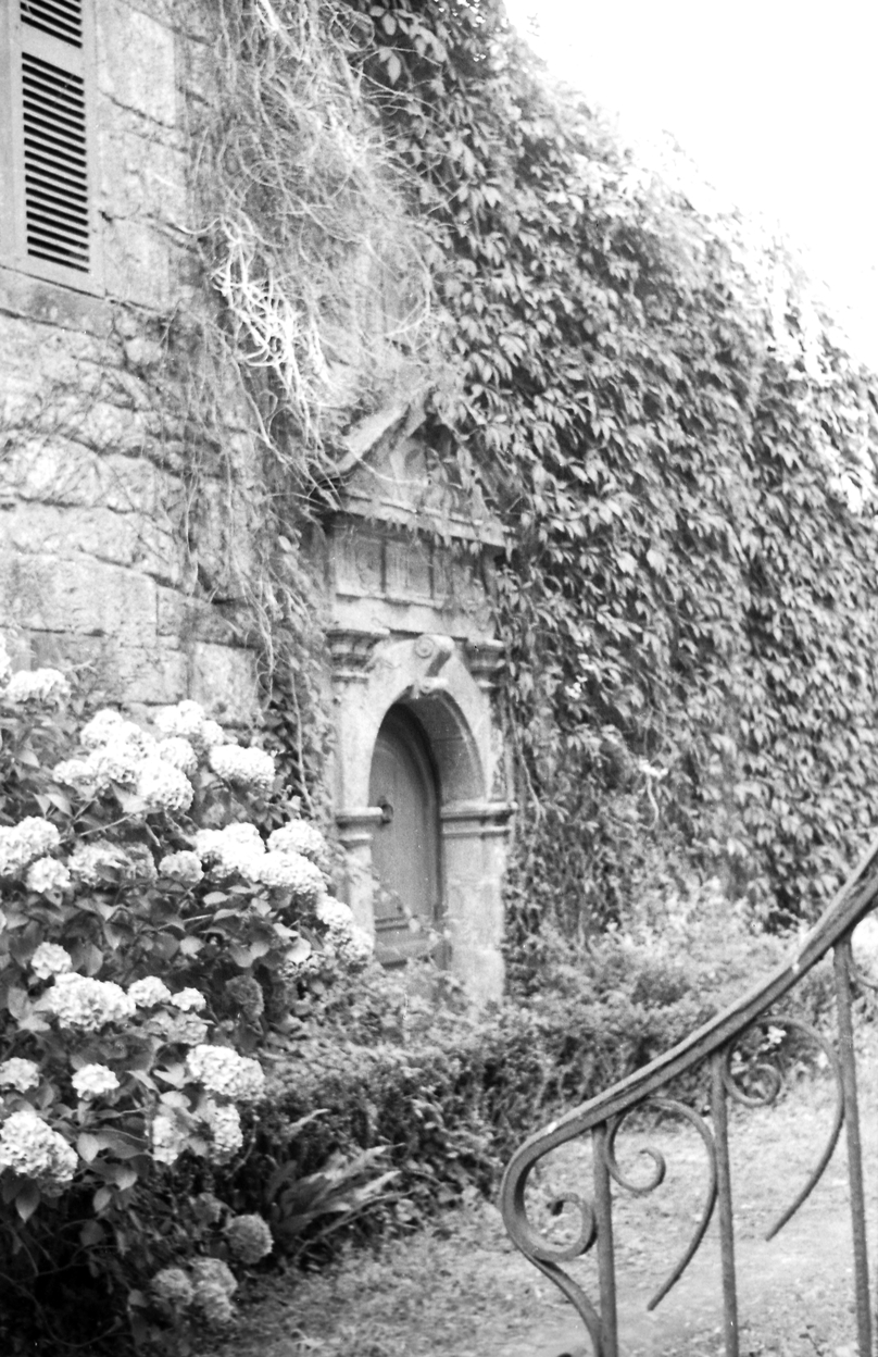 Logis abbatial, élévation sud, détail de la porte. (1969)Immatriculation