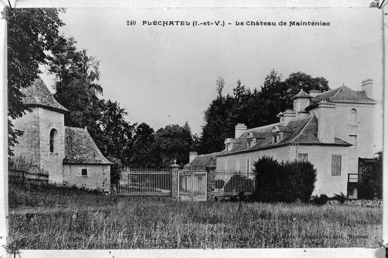 Carte postale ancienne - 240. Pléchâtel (I.-et-V.) - Le château de Mainténiac, ensemble des bâtiments.Immatriculation