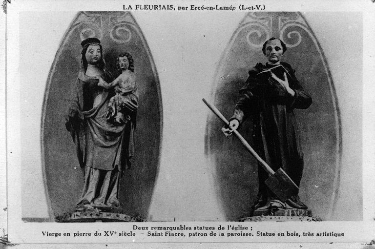 Statue (demi-nature) : Vierge à l'Enfant, chapelle Saint-Fiacre, église paroissiale, la Fleuriais (Ercé-en-Lamée),