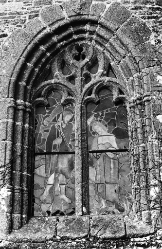 Façade ouest, bas-côté nord, détail fenêtre du mur ouest.Immatriculation