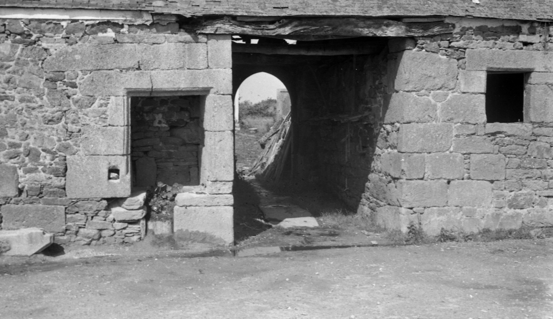 Trémel, Kergavarec : dépendance, élévation antérieure orientée vers l'est, détail du puits et du passage vers l'ouest, photographie de 1970Immatriculation