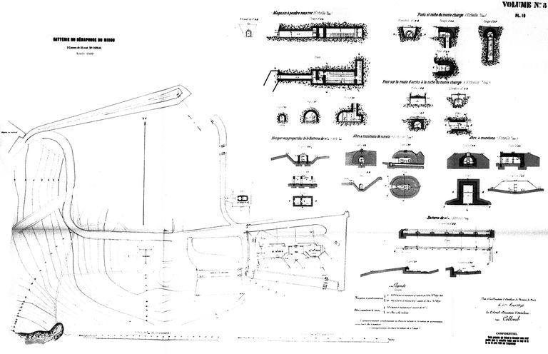 Plans et coupes de la batterie du Sémaphore du Minou, 1893 (Direction d'Artillerie du génie de Brest, colonel directeur d'Artillerie Collomb)Immatriculation