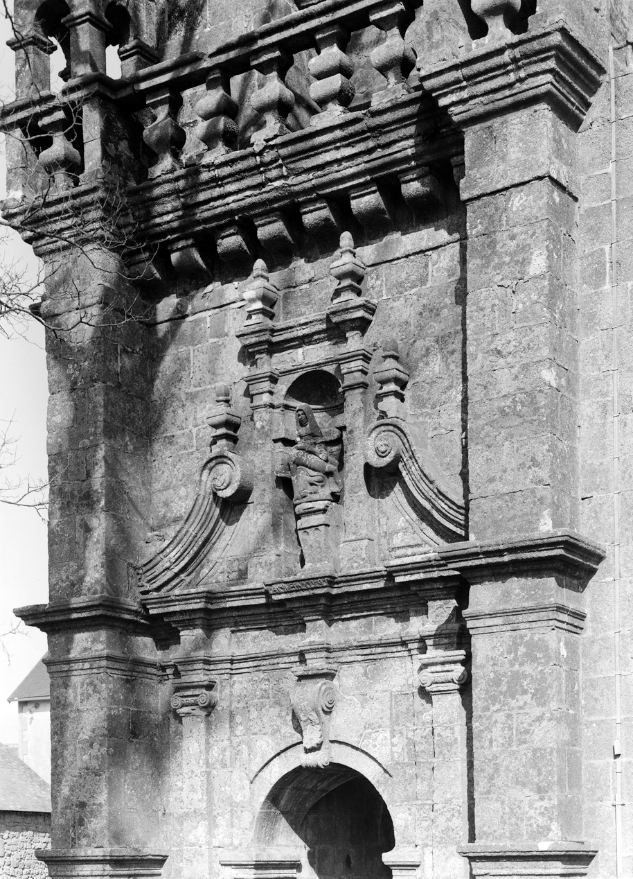 Clocher-porche, premier niveau sud, détail nicheImmatriculation