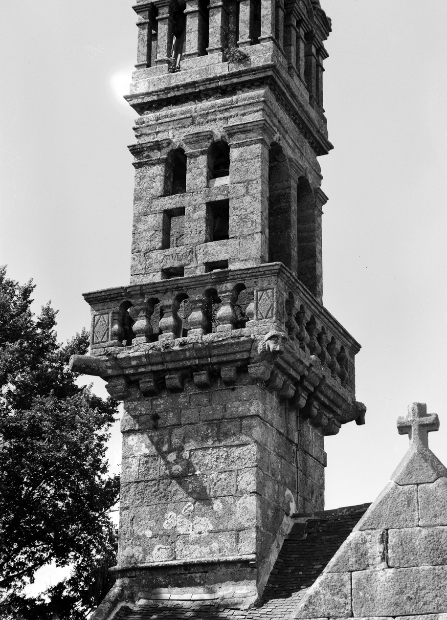 Clocher, détail : tour, ballustrade et chambre des cloches, vue prise du sud-estImmatriculation