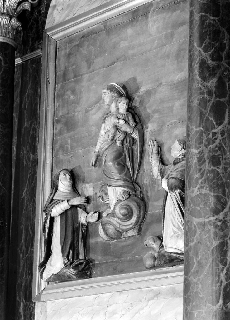 Bras nord, groupe du Rosaire du retable, vue générale de trois-quartsImmatriculation