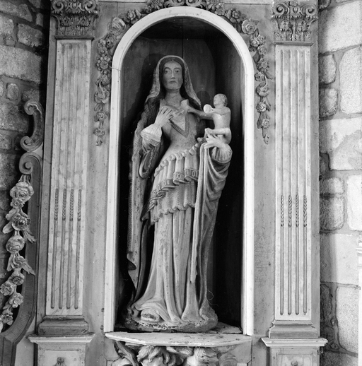 Statue (petite nature, d' applique) : Vierge à l'Enfant dite Notre-Dame de Bonne Nouvelle, chapelle Notre-Dame-de-Bonne-Nouvelle (Locronan),