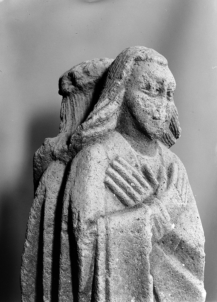 Arcades nord, pilier 2 : détail du visage du second personnage.Immatriculation