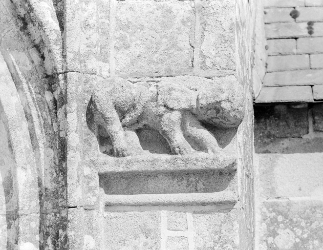 Façade sud, porche, détail animal droitImmatriculation