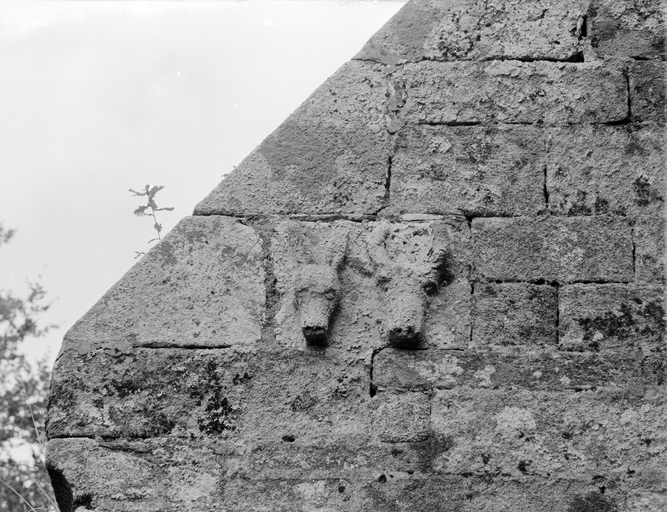 Façade ouest, pierre sculptée à la base du rampant nordImmatriculation