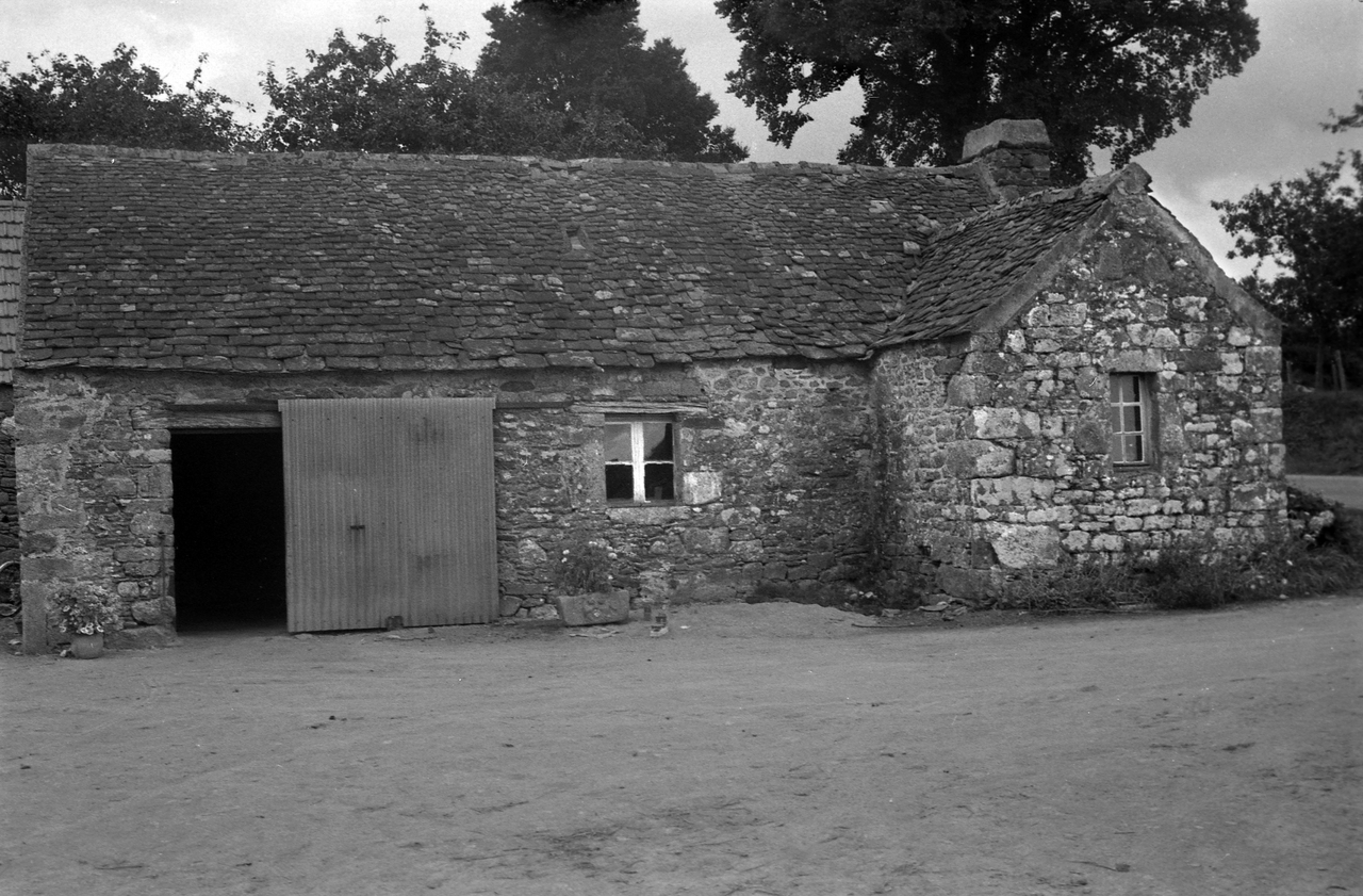 Plougonven, Lezoualc'h, maison à avancée et grange (état 1970)Immatriculation