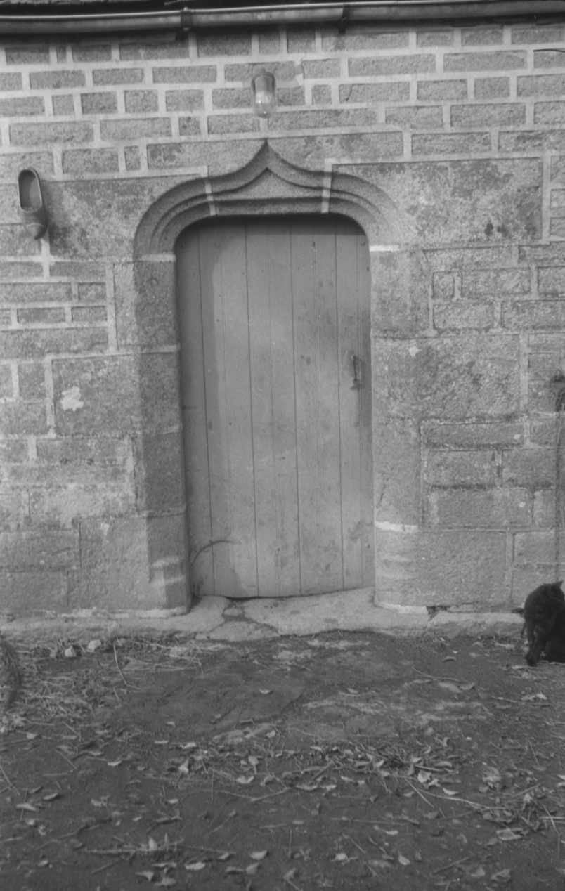 Logis, détail de la porte d'entrée. (1970)Immatriculation