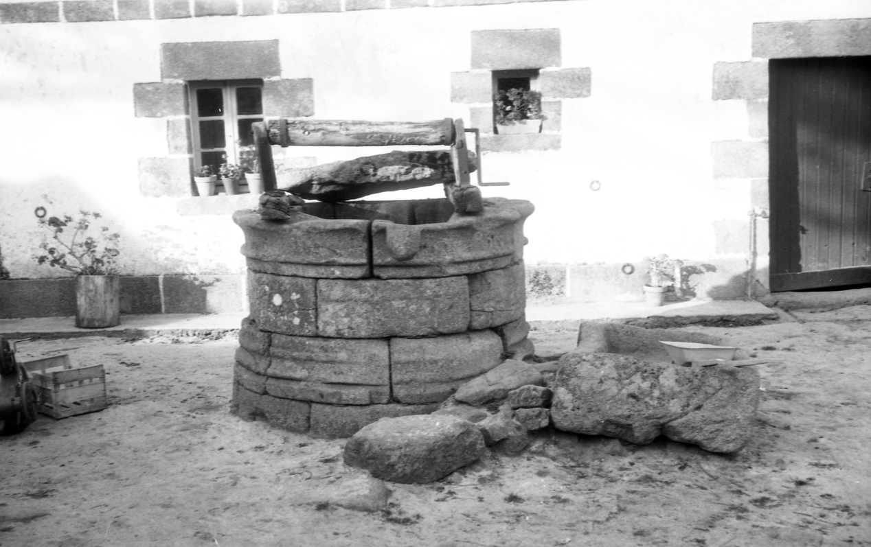 Phlibéré, ferme. Détail du puits circulaire dans la cour. (1970)Immatriculation