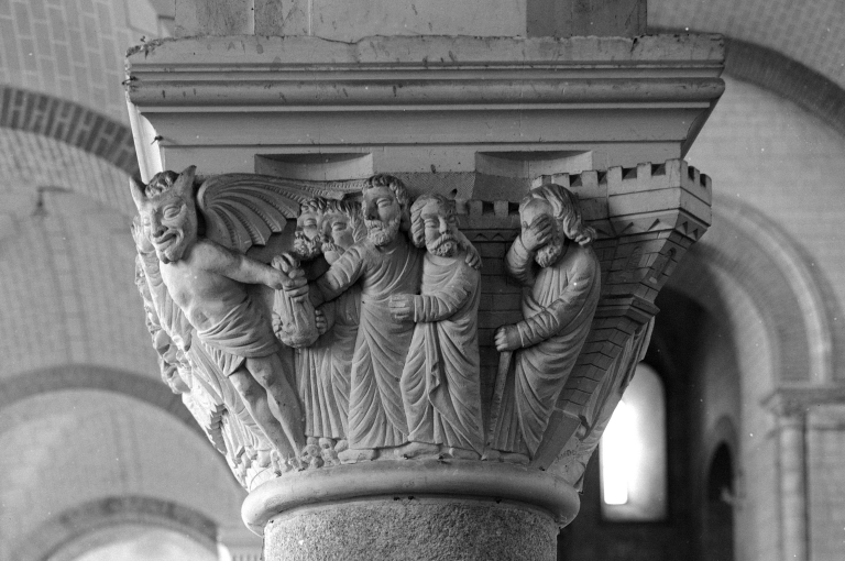 Chapiteau de la nef, 4ème pile sud, départ de l'enfant prodigue.Immatriculation