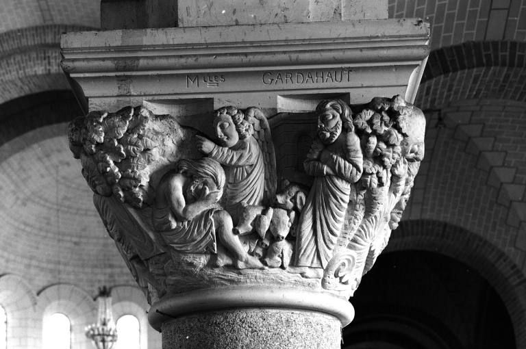 Chapiteau de la nef, 4ème pile sud, repentir de l'enfant.Immatriculation