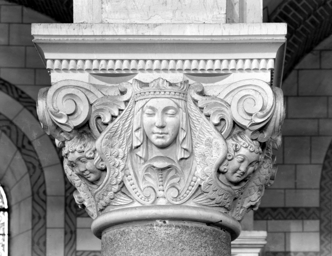 Chapiteau de la nef, 3ème pile nord, face sud, tête de reine.Immatriculation