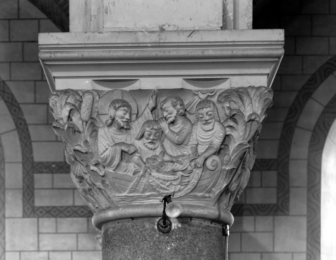 Chapiteau de la nef, 6ème pile nord, face sud, la pêche miraculeuse.Immatriculation
