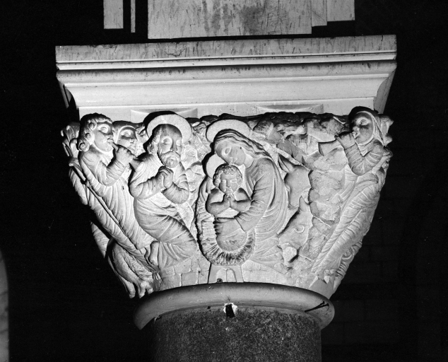 Chapiteau de la nef, 2ème pile sud, la Nativité.Immatriculation