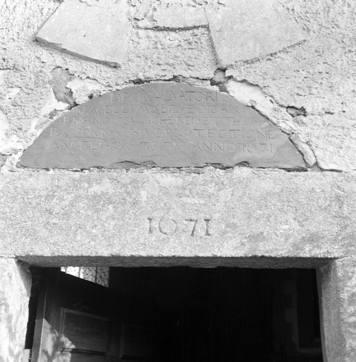 façade nord, vue de détail du linteau et de l'inscription.Immatriculation