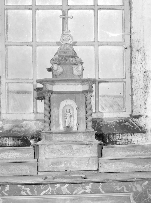 Autel, exposition, gradins d'autel (2) (maître-autel), église paroissiale Saint-Mélaine (Meslan),
