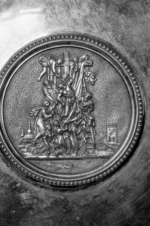 Patène (3), détail : descente de croix d'après Rubens.Immatriculation