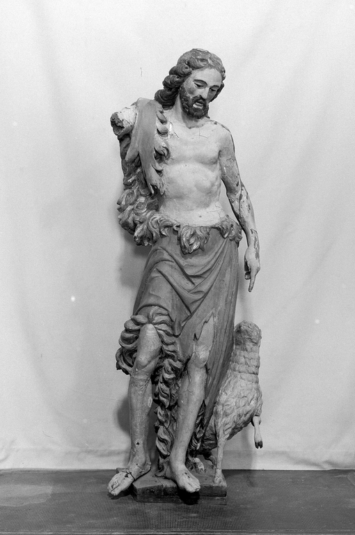Lanvellec, Saint-Carré : chapelle Notre-Dame-de-Pitié, statue de Saint Jean-Baptiste, vue générale de face, photographie de 1971Immatriculation
