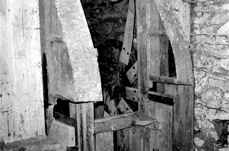 Vue du mécanisme intérieur du moulin (Nicole Chouteau, 1971, SRI)Immatriculation