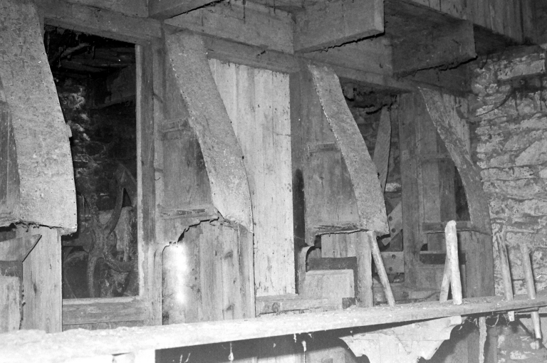 Vue du mécanisme intérieur du moulin à 6 spatules (Nicole Chouteau, 1971, SRI)Immatriculation