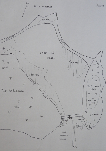 Plan du site du moulin à marée (dessin, Nicole Chouteau, 1971, ADAGP)Immatriculation