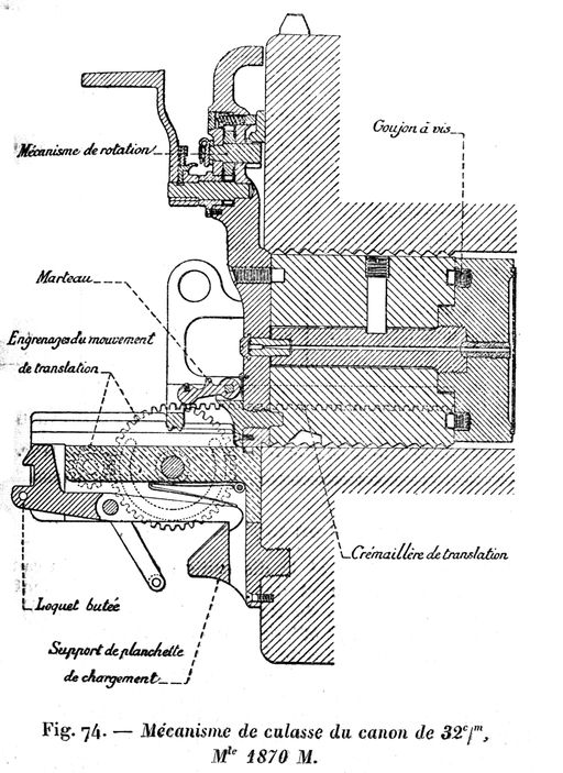 Plan détaillé du mécanisme de culasse d'un canon de 32 cm modèle 1870 (armement de la batterie de rupture du Portzic sur affûts modèle 1882 PA modifiés)Immatriculation