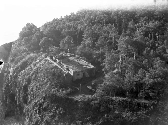 Vue aérienne du corps de garde crénélé n° 2 modifié dite batterie de Morgat ou Kador en 1971Immatriculation