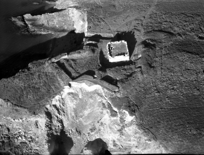 Vue aérienne de l'île de l'Aber en 1971 : batterie et réduit de batterie de côte daté de 1862Immatriculation