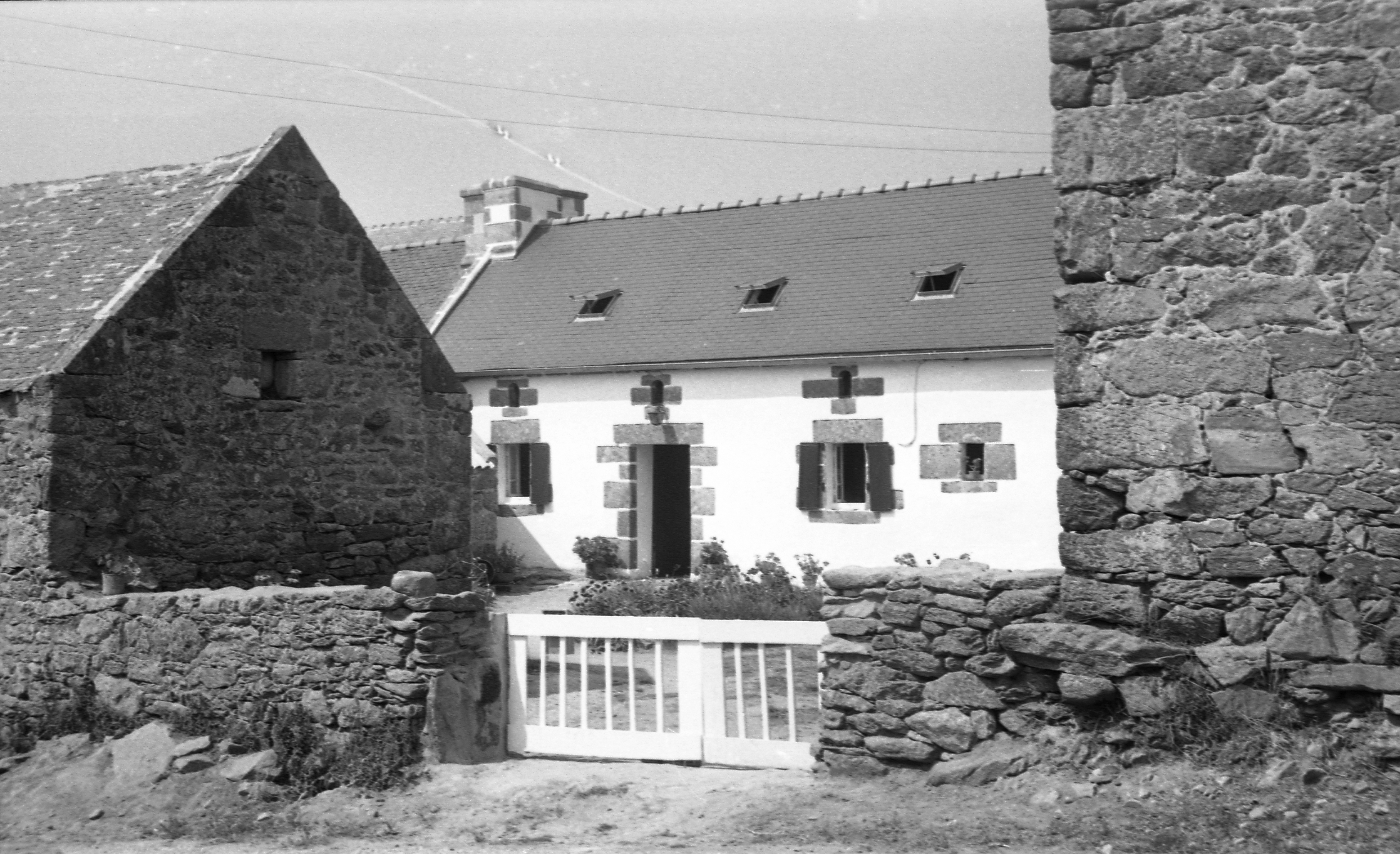 Le Castel, maison en rez-de-chaussée et comble à surcroit éclairé par trois jours en plein cintre. Elévation antérieure. (1971)Immatriculation