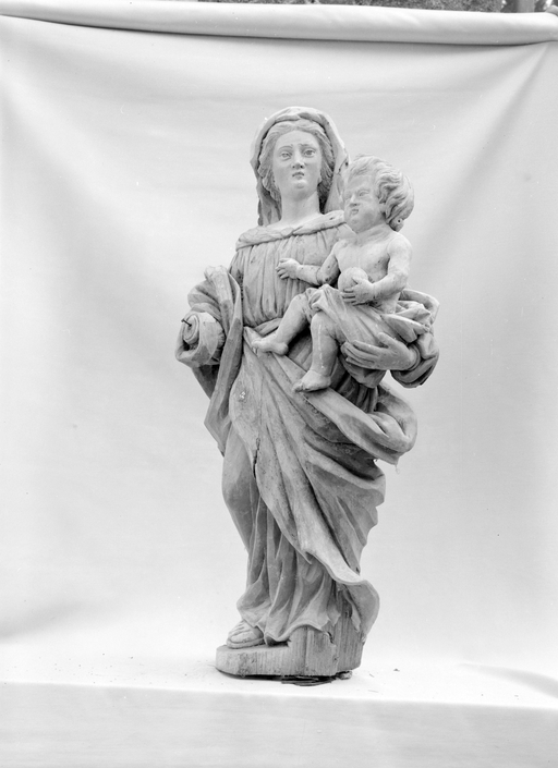 Statue (petite nature, d'applique) : Vierge à l'Enfant dite Notre-Dame de clarté, chapelle Notre-Dame de Loctavy (Priziac),