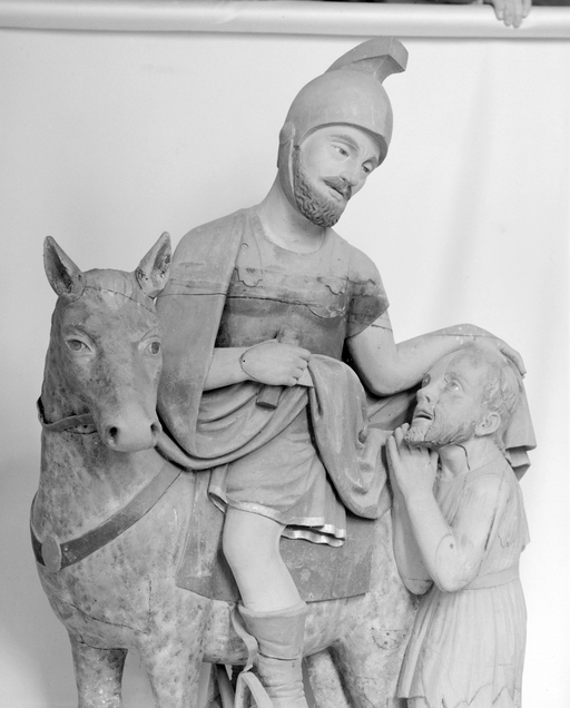 Groupe sculpté (petite nature, d'applique) : la Charité de saint Martin (1), chapelle Saint-Tugdual (Guiscriff),