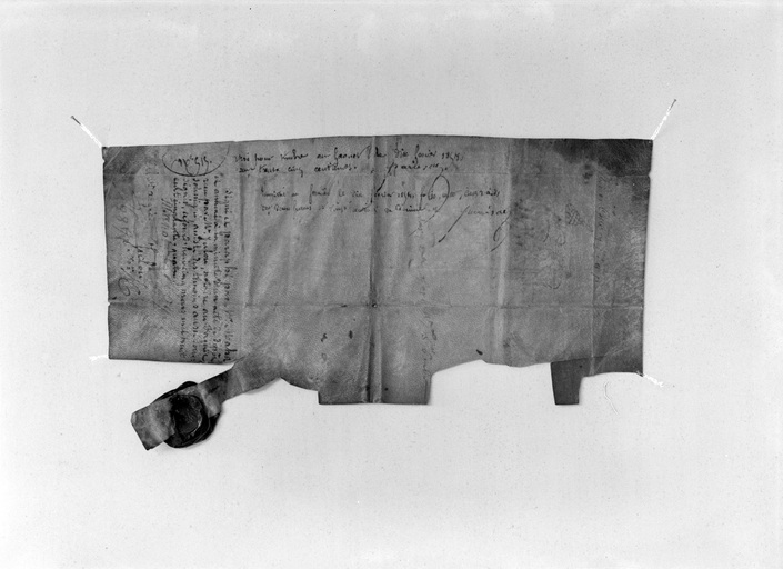 Acte de fondation de la chapelle, 6 juillet 1489, recto (Me Ezvan, notaire au Faouët).Immatriculation