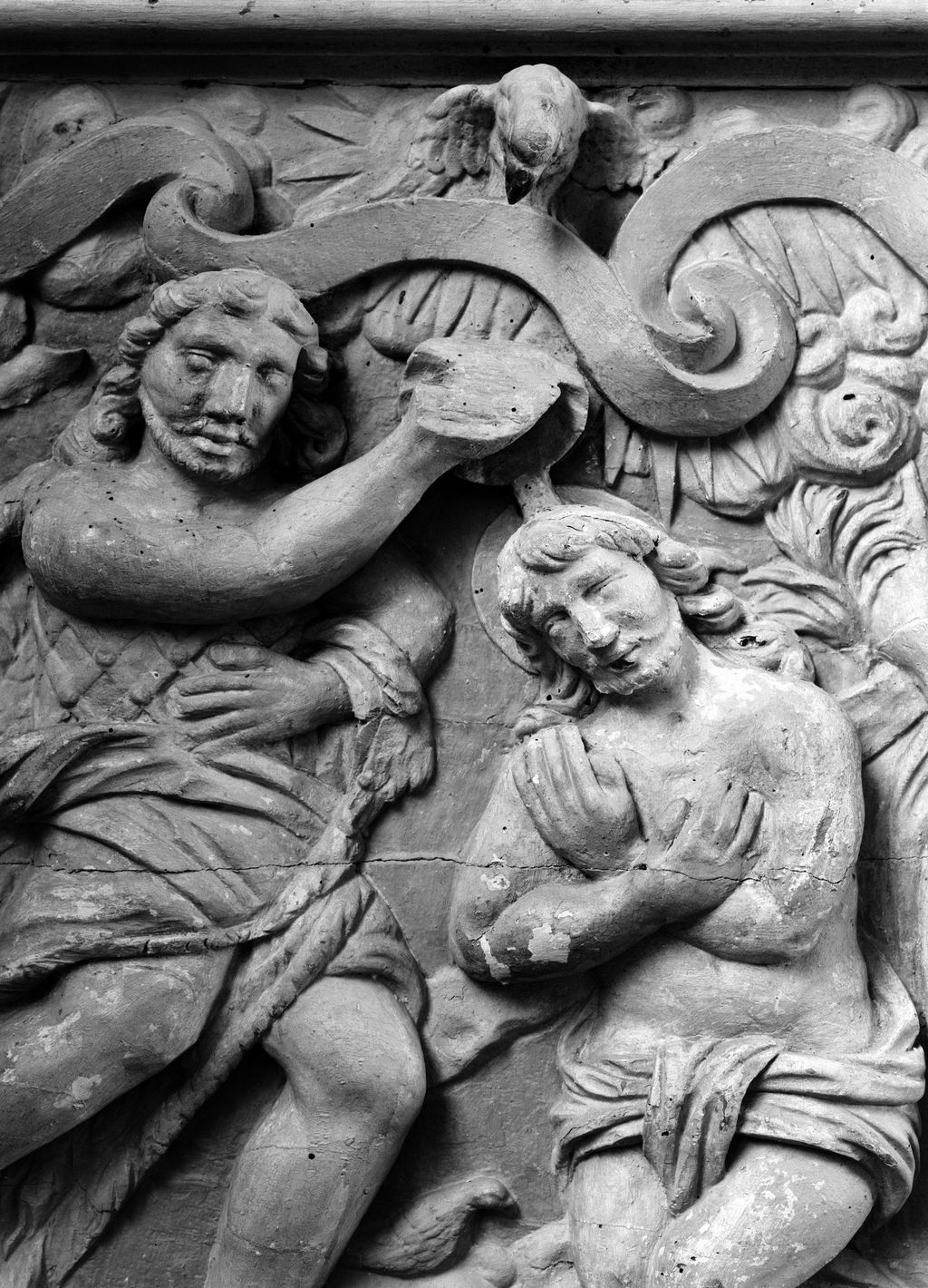 Détail panneau du premier niveau latéral gauche : bas-relief 'le Baptême du Christ'Immatriculation