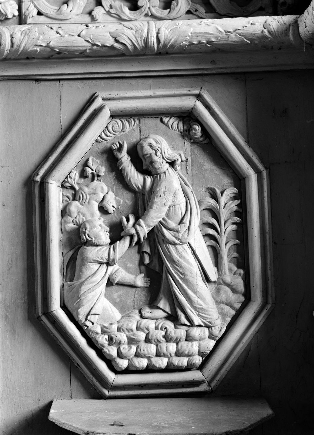 Détail panneau de la travée droite de l'aile droite : bas-relief 'saint Pierre marchant sur les eaux'Immatriculation