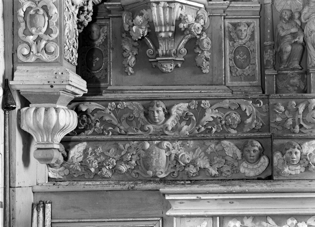 Retable central, détail des gradins de la partie gaucheImmatriculation
