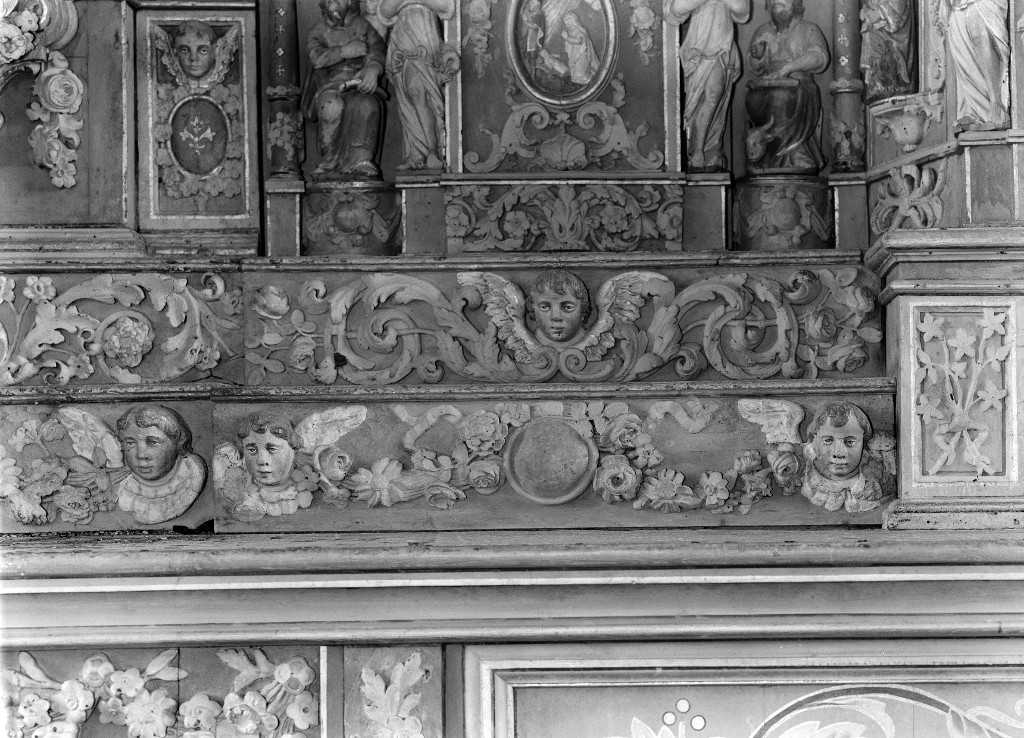 Retable central, détail des gradins de la partie droiteImmatriculation