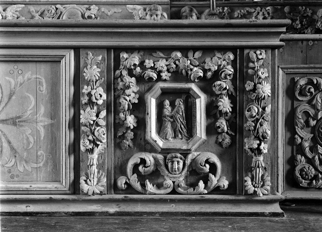 Autel central, détail du panneau droit de l'antépendium 'la Visitation'Immatriculation
