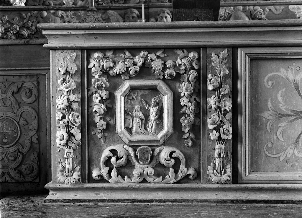 Autel central, détail du panneau gauche de l'antépendium 'l'Annonciation'Immatriculation