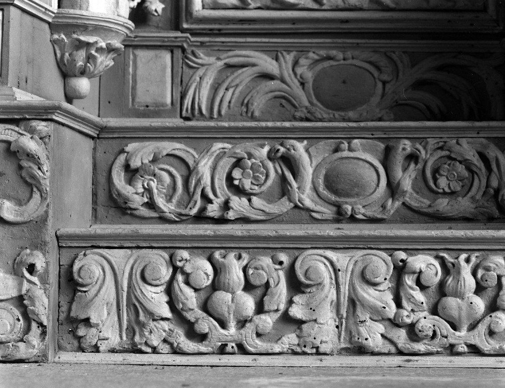 Retable central, détail de la partie droite des gradinsImmatriculation