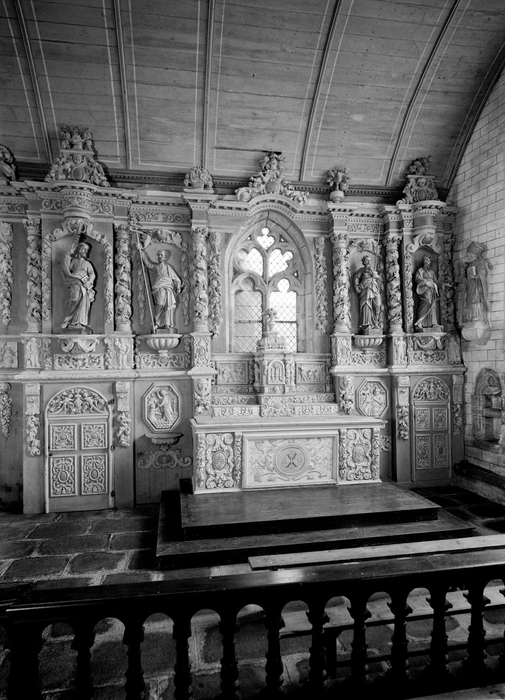 Ensemble (autel, retable, tabernacle, 2 gradins d'autel), chapelle Sainte-Marie-du-Menez-Hom (Plomodiern),